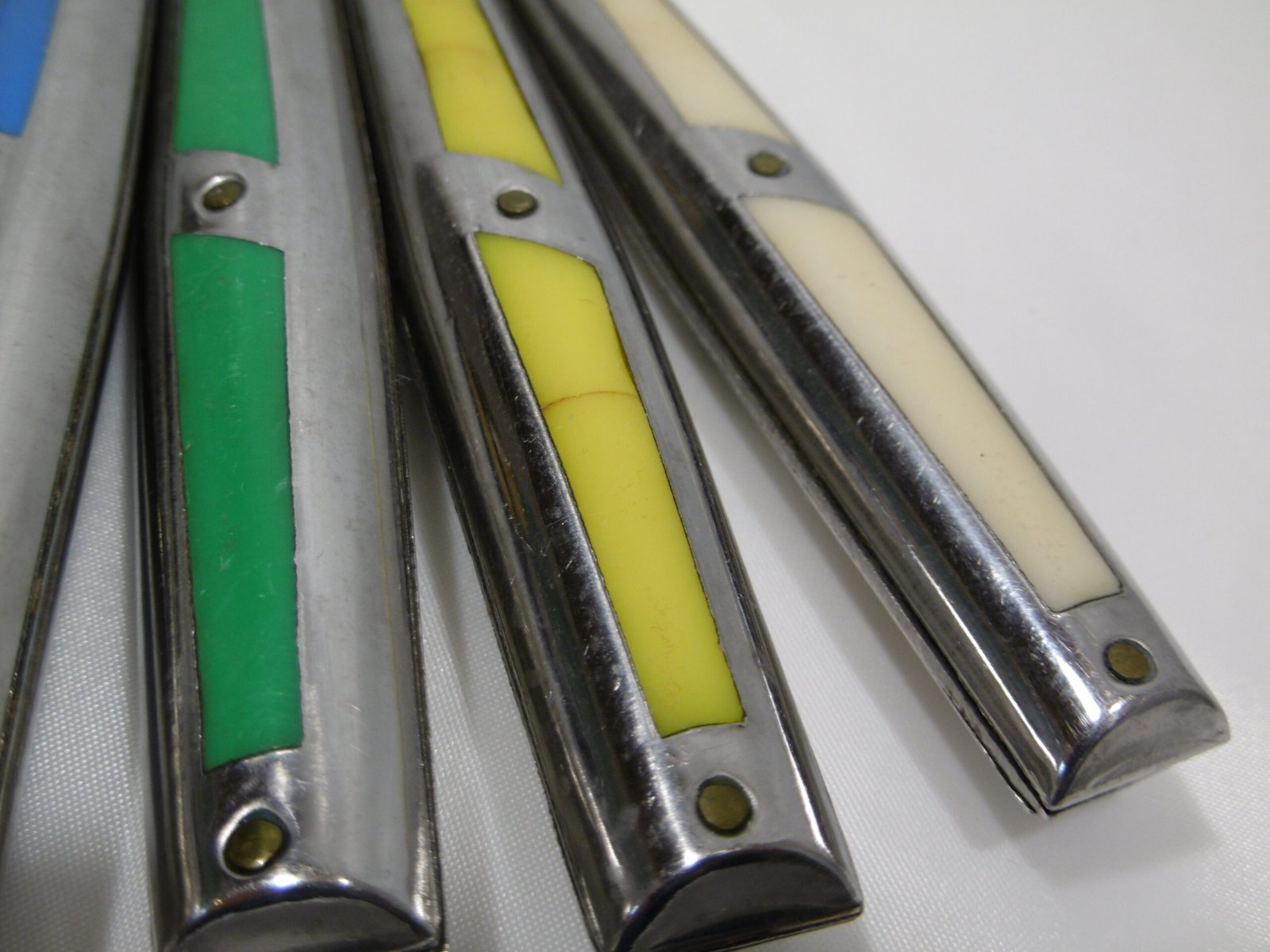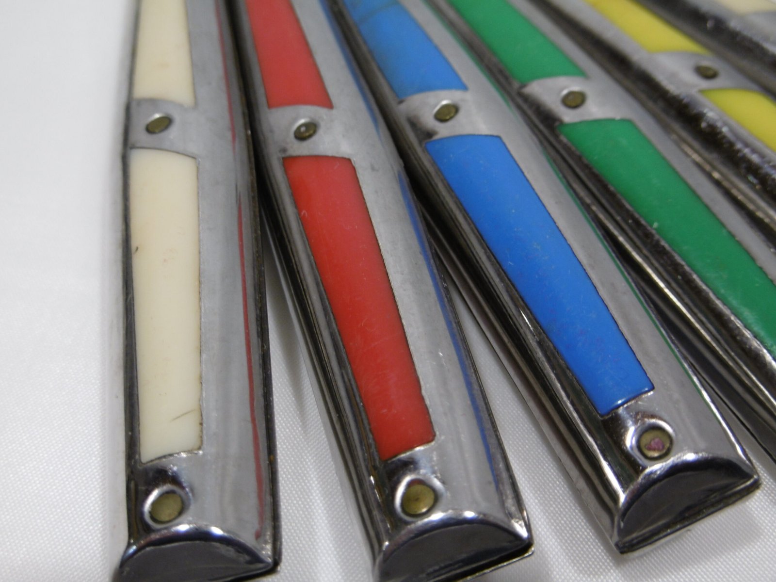Ces couteaux multicolores, non seulement utiles mais aussi originaux, mettront votre table en joie. Lame inox de la marque Martin Pêcheur, les manches sont en matière plastique colorée sertis dans l’inox.