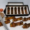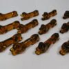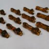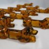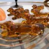 Craquant ! Il n’y a pas d’autre mot pour ces repose-couteaux. Des bassets, fauve de Bretagne en verre ambre, des années 70. Ils sont douze dans leurs boîtes à attendre sagement d’en sortir pour se coucher sur une belle nappe.