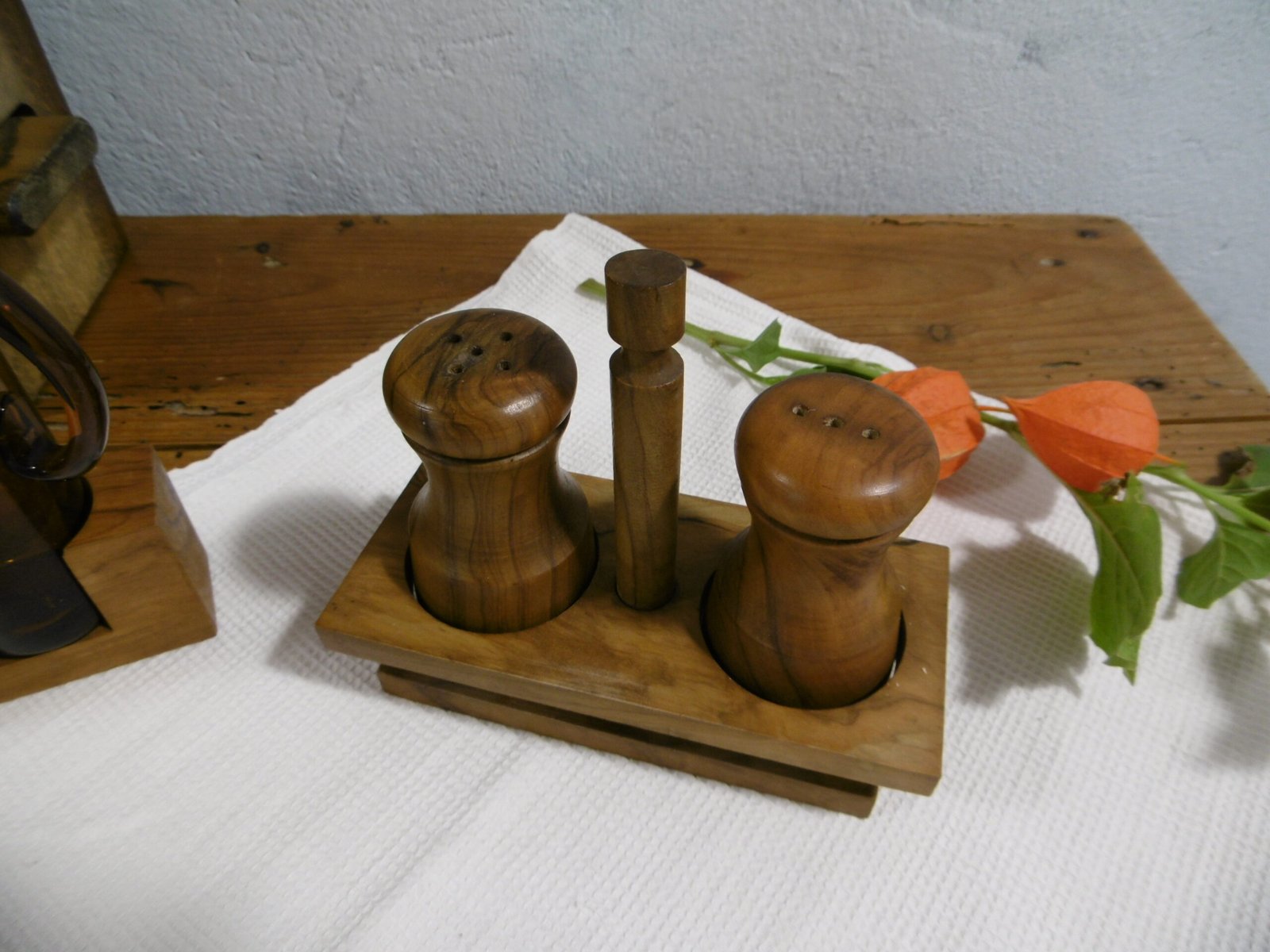 Service à condiment pour sel & poivre en bois d’olivier de style scandinave.
