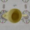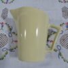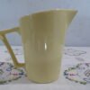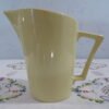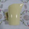 Très graphique pichet en céramique jaune paille des années 50. Profil aérodynamique, poignée anguleuse et aplat du bec verseur, anti-goutte. C’est un très beau design pour un objet usuel, pratique et esthétique.