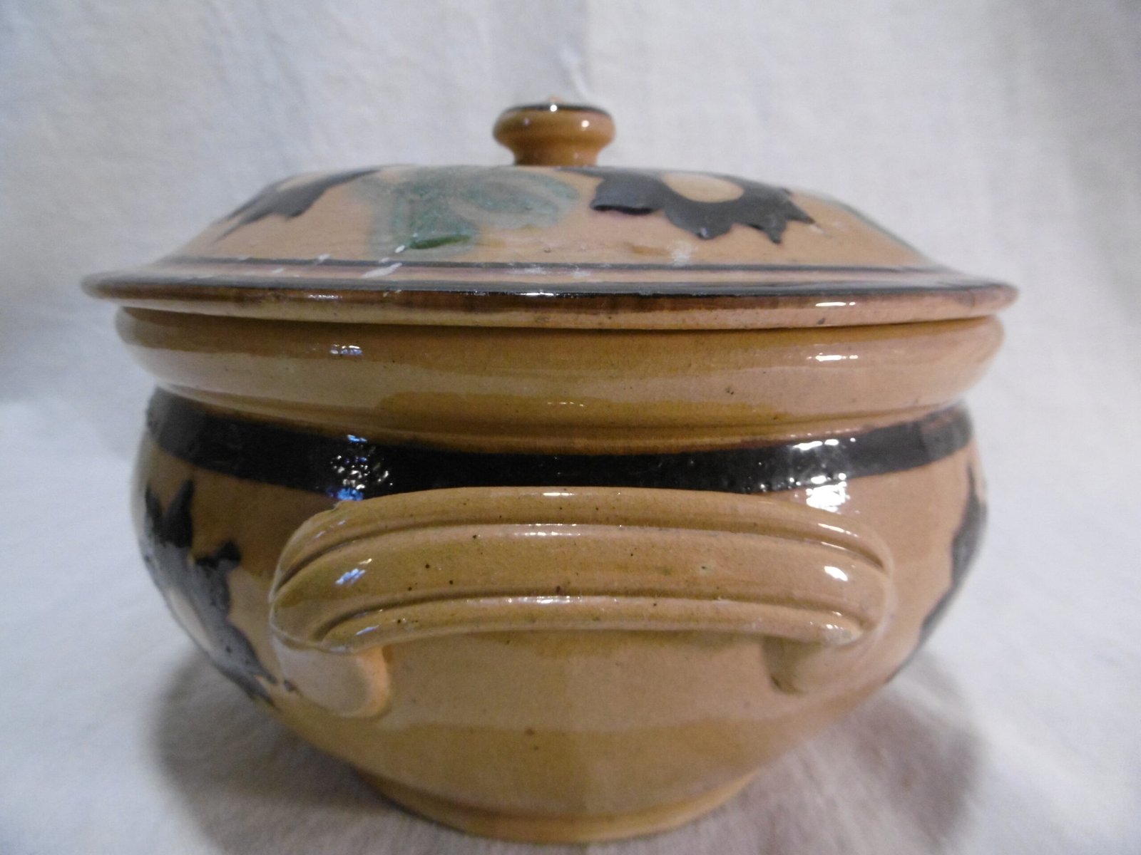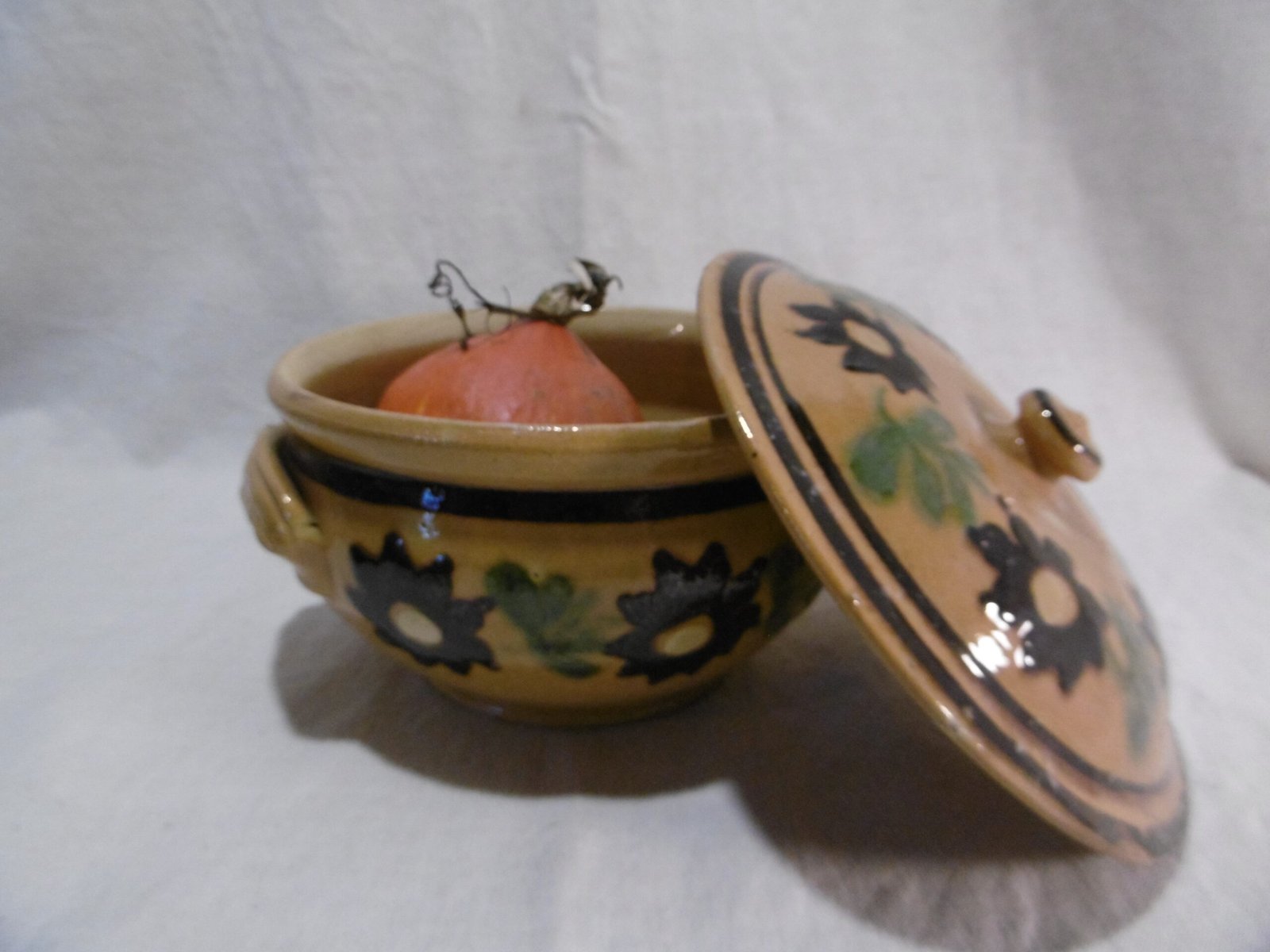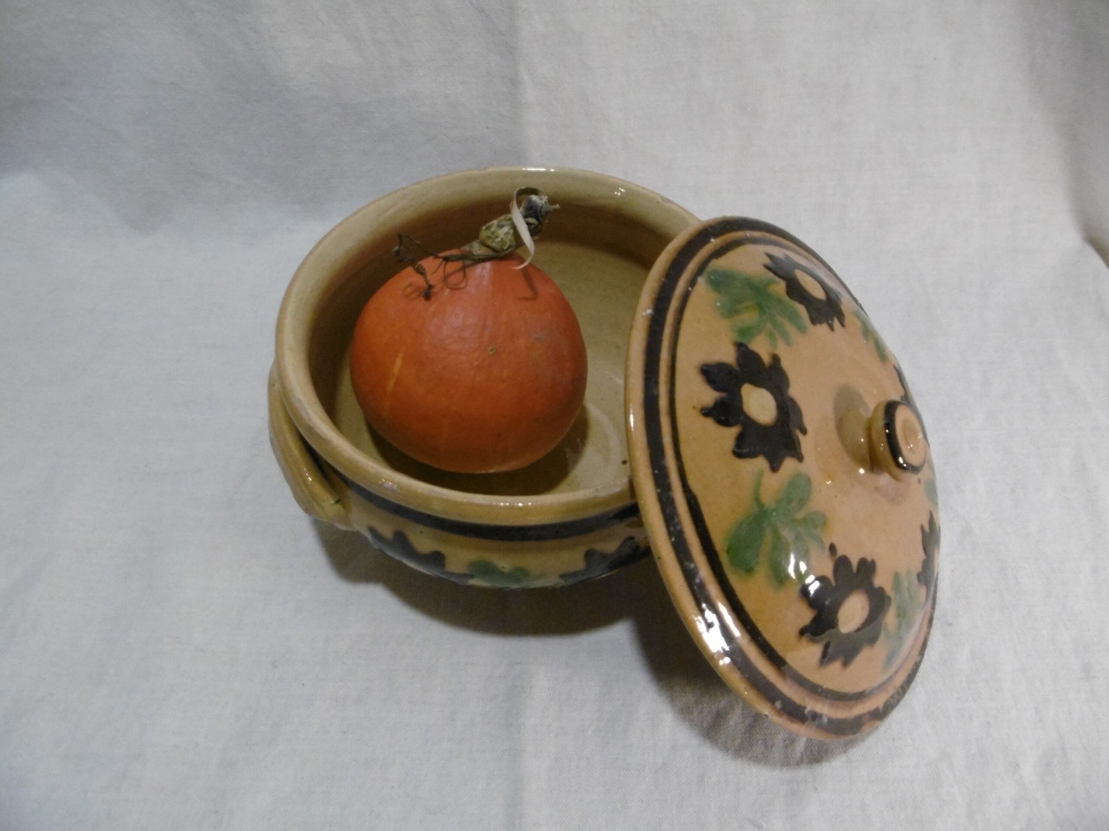 Très belle terrine de Soufflenheim, ancien modèle pour cuisiner le baeckeoffe, un plat traditionnel alsacien tout comme le fleichnaka et le koagelhopf.