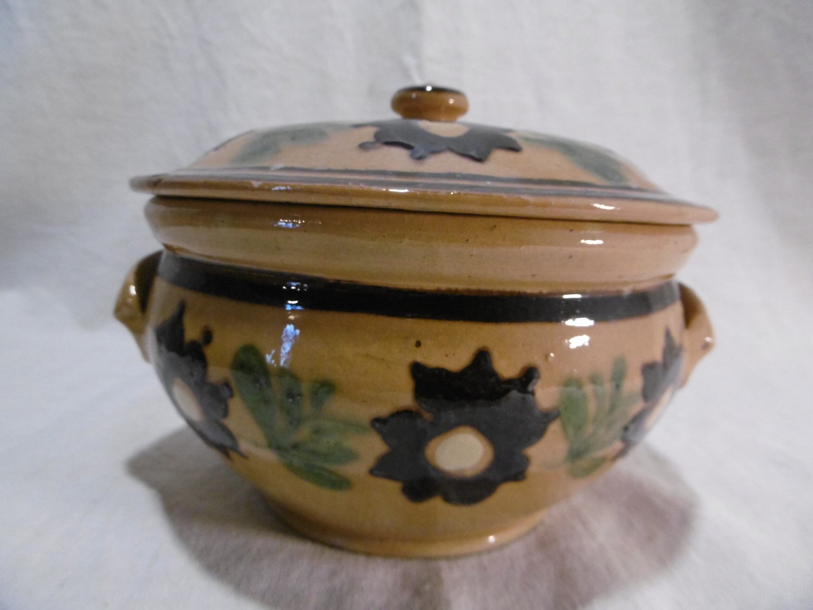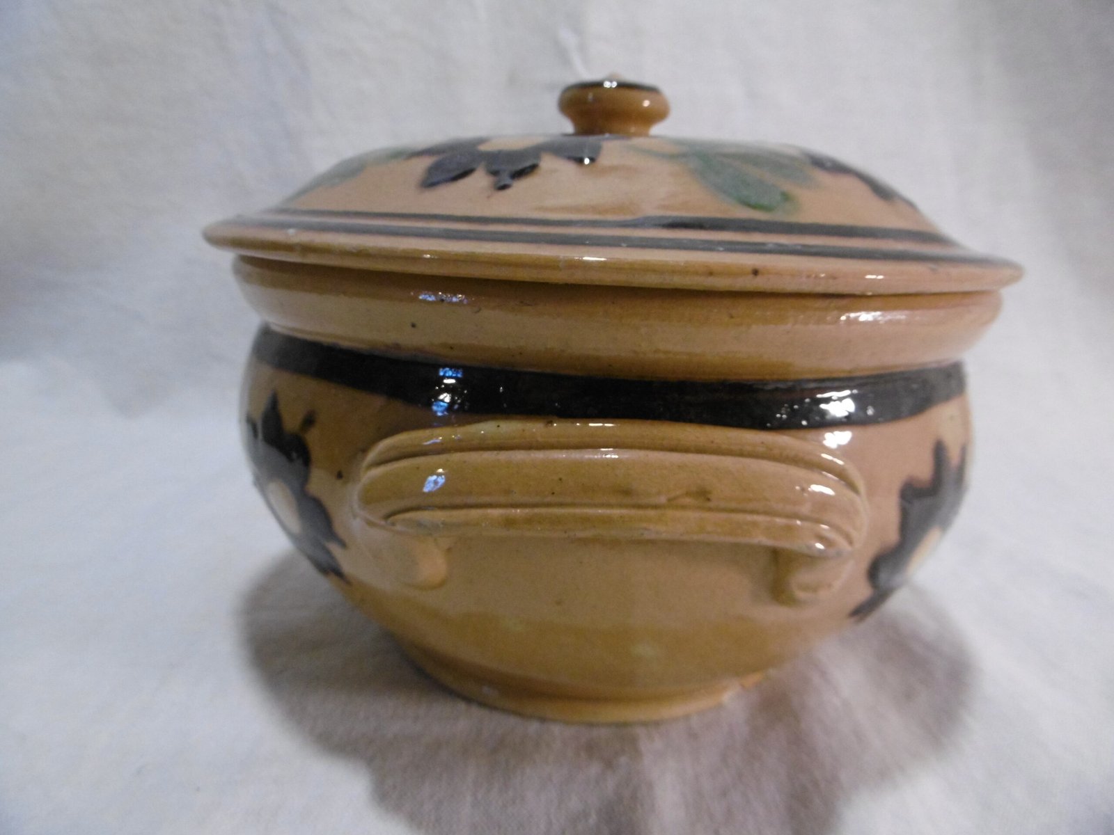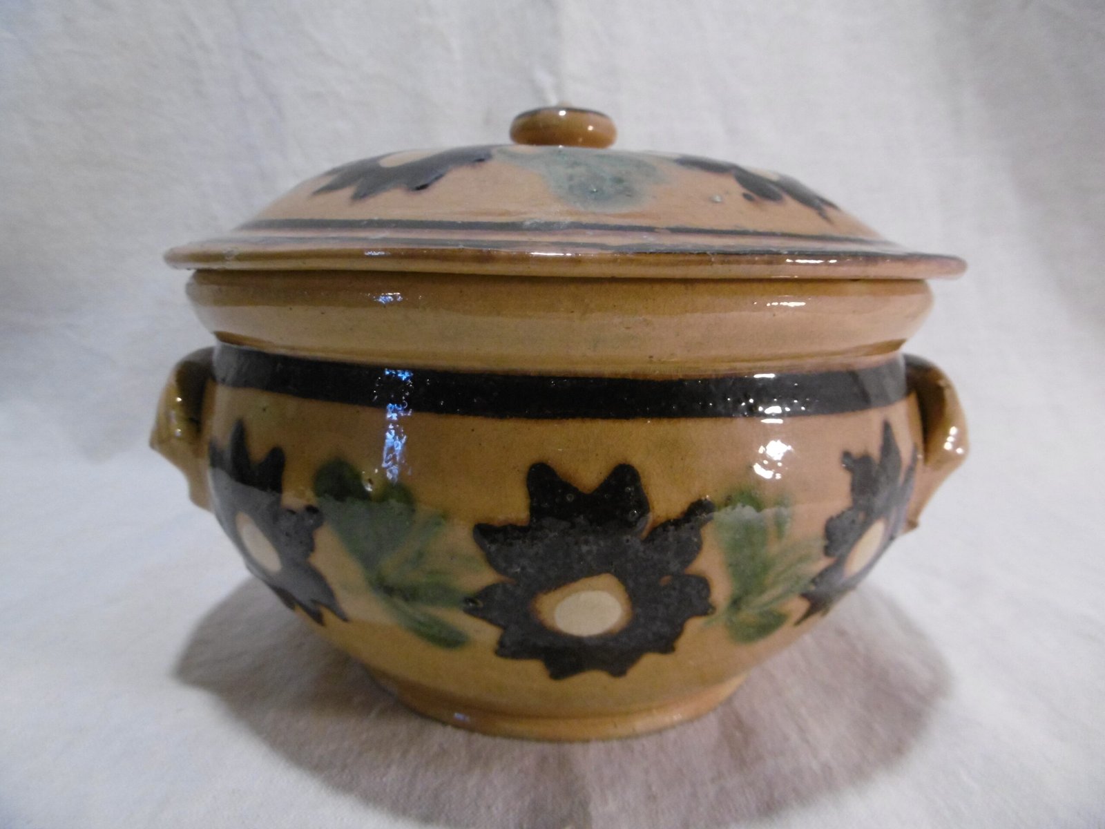 Très belle terrine de Soufflenheim, ancien modèle pour cuisiner le baeckeoffe, un plat traditionnel alsacien tout comme le fleichnaka et le koagelhopf.