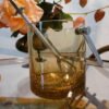 100% vintage et 100% hip, pour ce seau à glace en verre ambré craquelé. Notez le design contemporain de la poignée en acier chromé argent. De quoi faire tinter les glaçons !