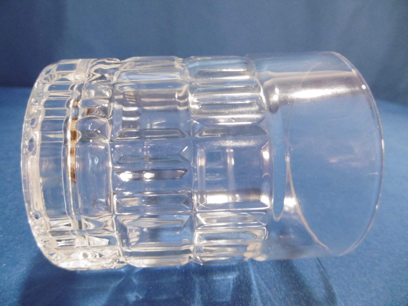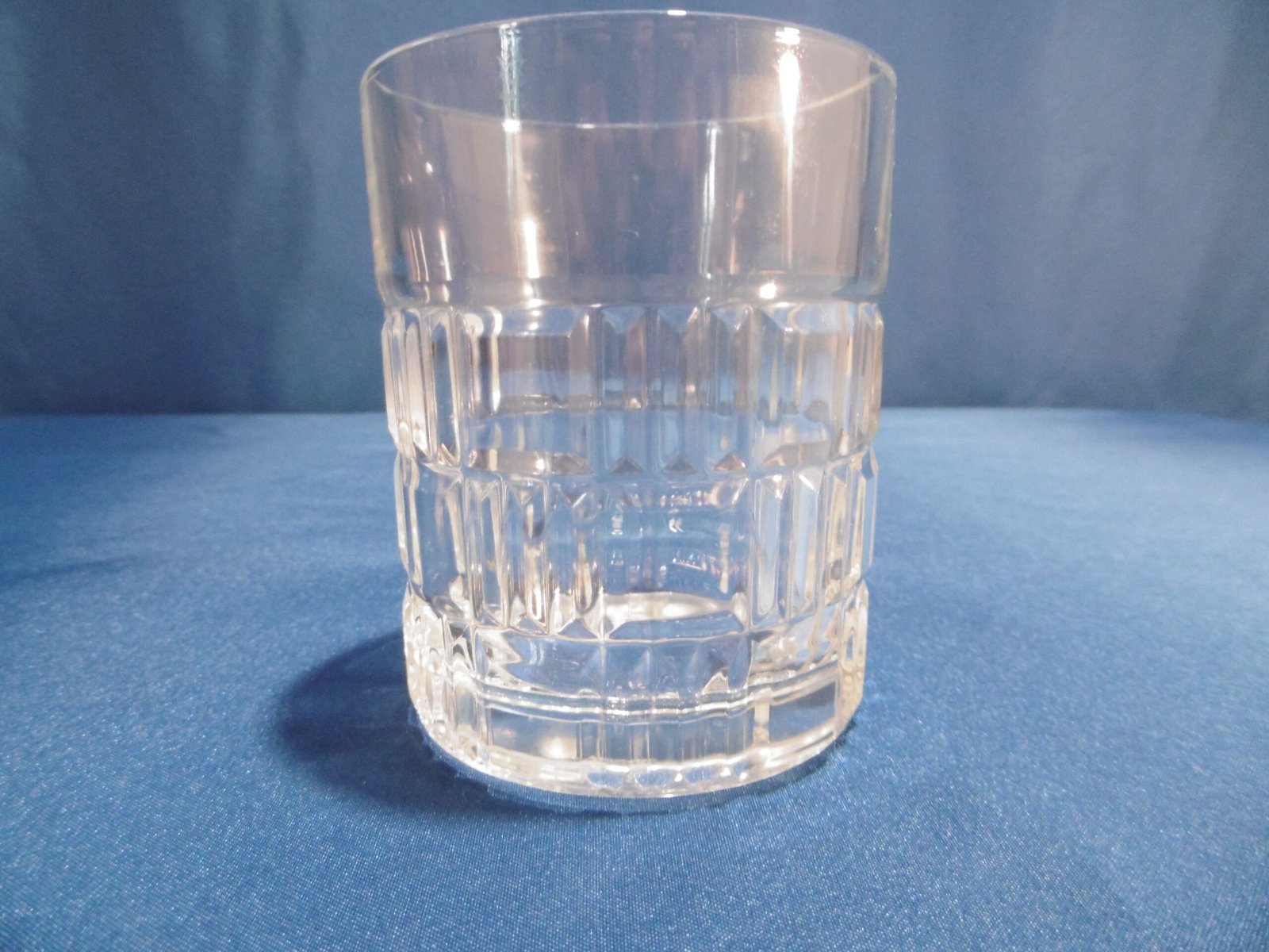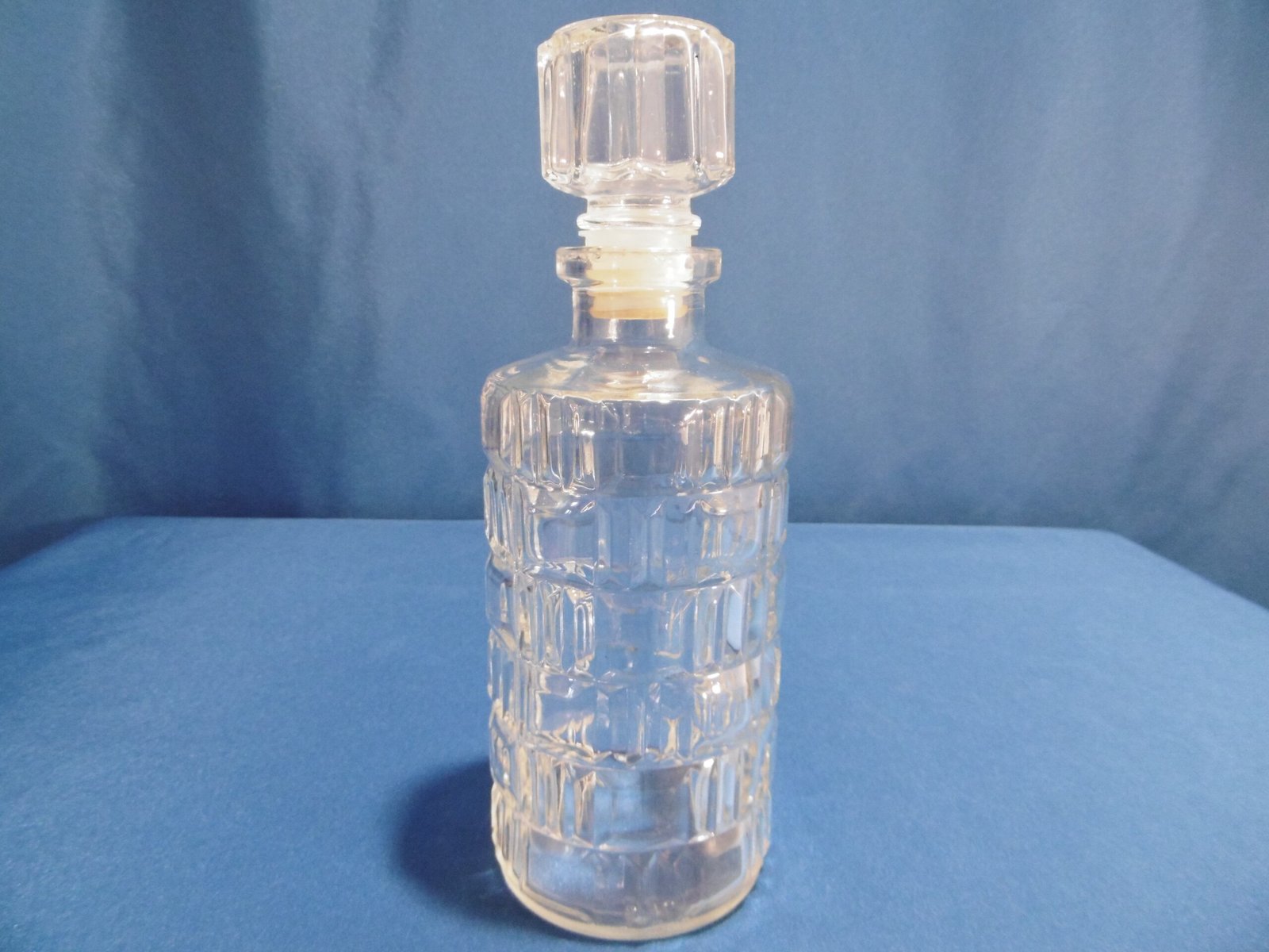 Service à whisky Luminarc. Les contenants sont de forme cylindrique, le décor alterne des carrés et des barrettes groupées par trois.