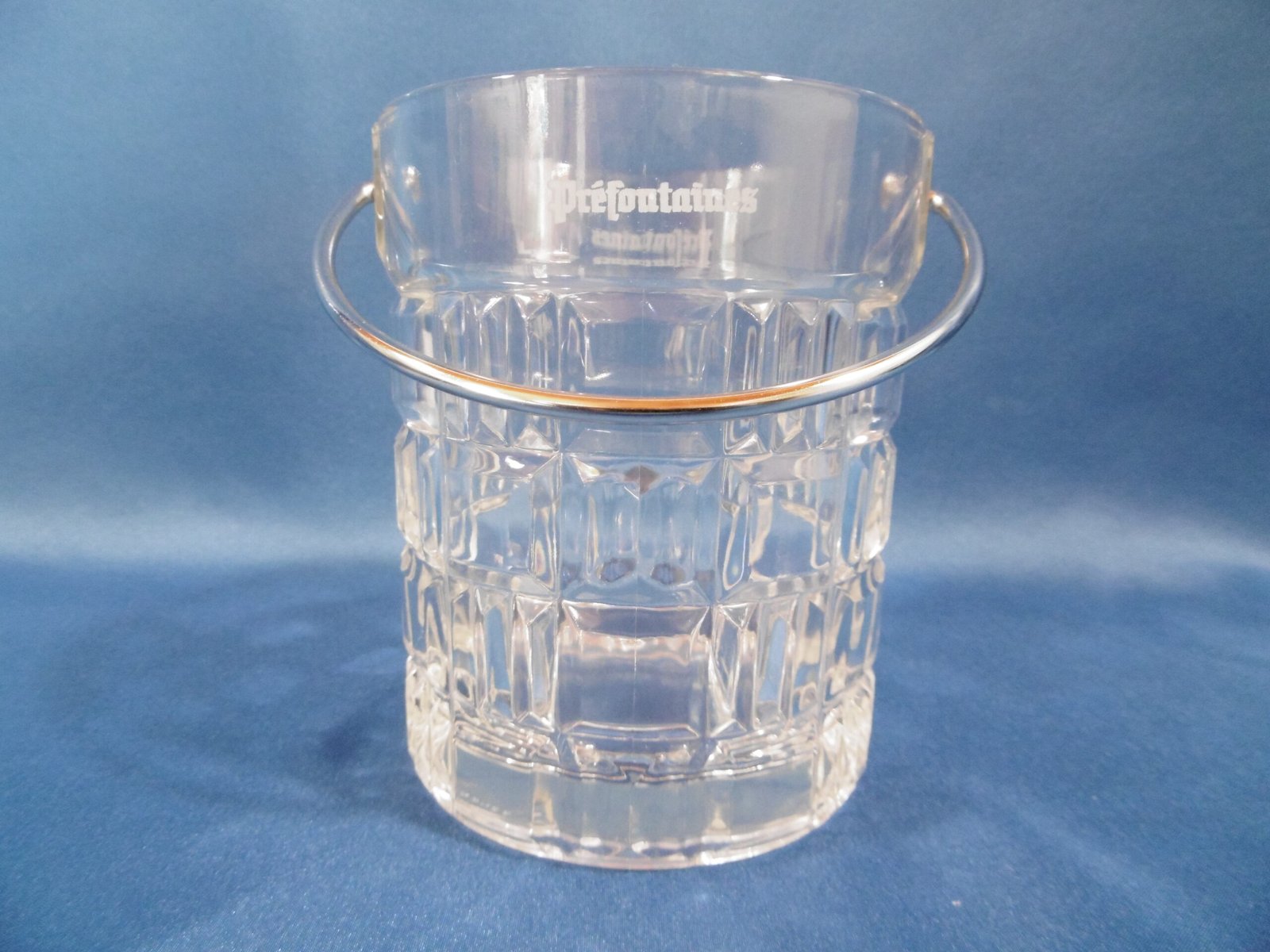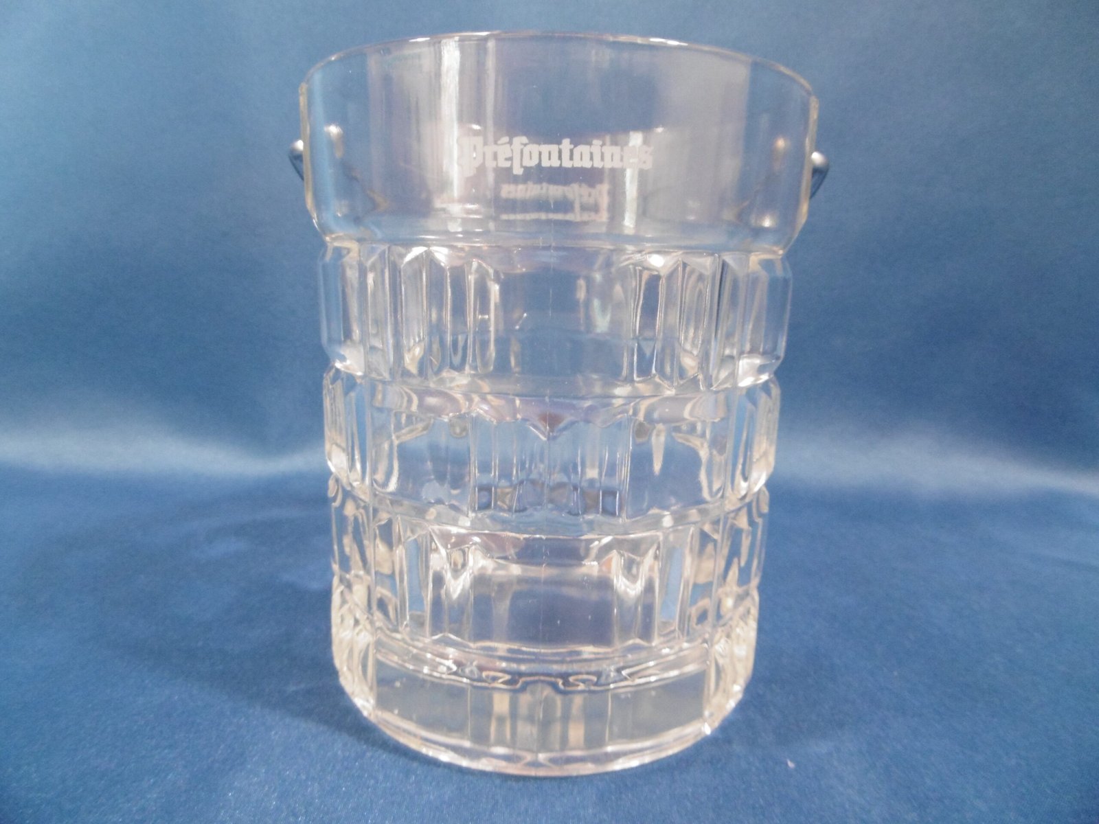 1 Seau à glace : h 13 cm ; diamètre col 11 cm ; diamètre base 10 cm ; largeur+anse 12.5 cm