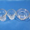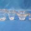 12 coupelles : H 5.5 cm ; Ø buvant : 9.4 cm ; Ø base : 3.8 cm ; masse : 0.660 kg