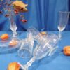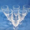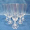 Ces six flûtes à champagne de fabrication portugaise sont encore dans leur boîte. En cristal moulé, le décor à la base du buvant est à quatre rangs de damiers et la jambe cranté à six facettes.