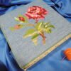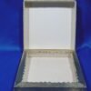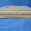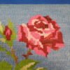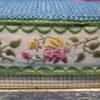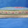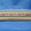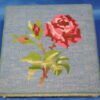 Une boîte à friandises carrée pour garder de petits trésors comme les mots doux… Le dessus est tendu d’une tapisserie au point de croix représentant une rose épanouie et son bouton en devenir. Sur les côtés très beau ruban de satin brodé de roses, aussi. Bel intérieur très propre avec garniture de papier doré.