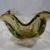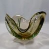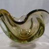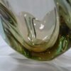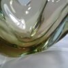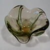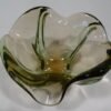 Ce vide-poches en verre bicolore soufflé bouche, vient de Murano. Les coloris subtils, vert olive et camel, accentuent les effets de reflet. De forme libre et souple il convient à tous les décors du plus contemporain jusqu’au plus classique. À mettre en valeur sur du verre, du marbre, mais aussi un bois flammé.