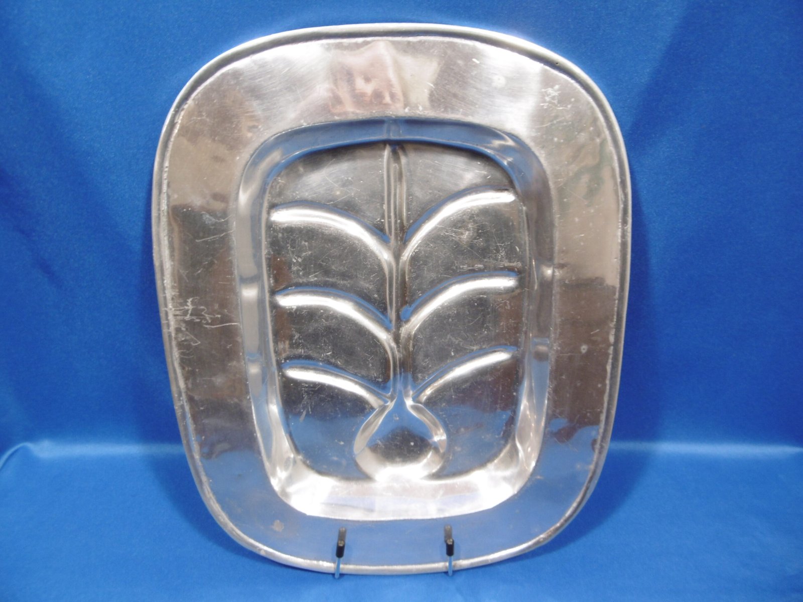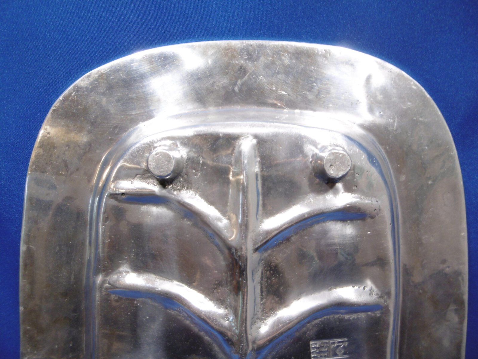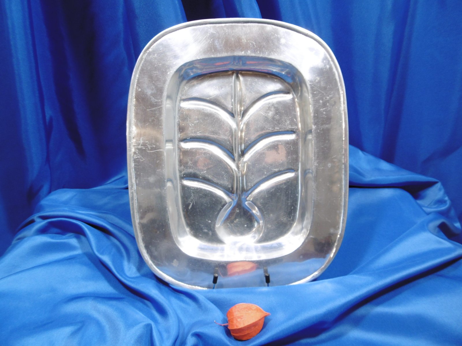 Un grand plat décoratif ou vide poche de Joao Vieira De Campos. Il est en alliage d’aluminium, ligne Feu, créée après 1970 car avant la marque fabriquait des objets en étain. Il repose sur six pieds et son décor en creux par moulage représente une plante de style contemporain.