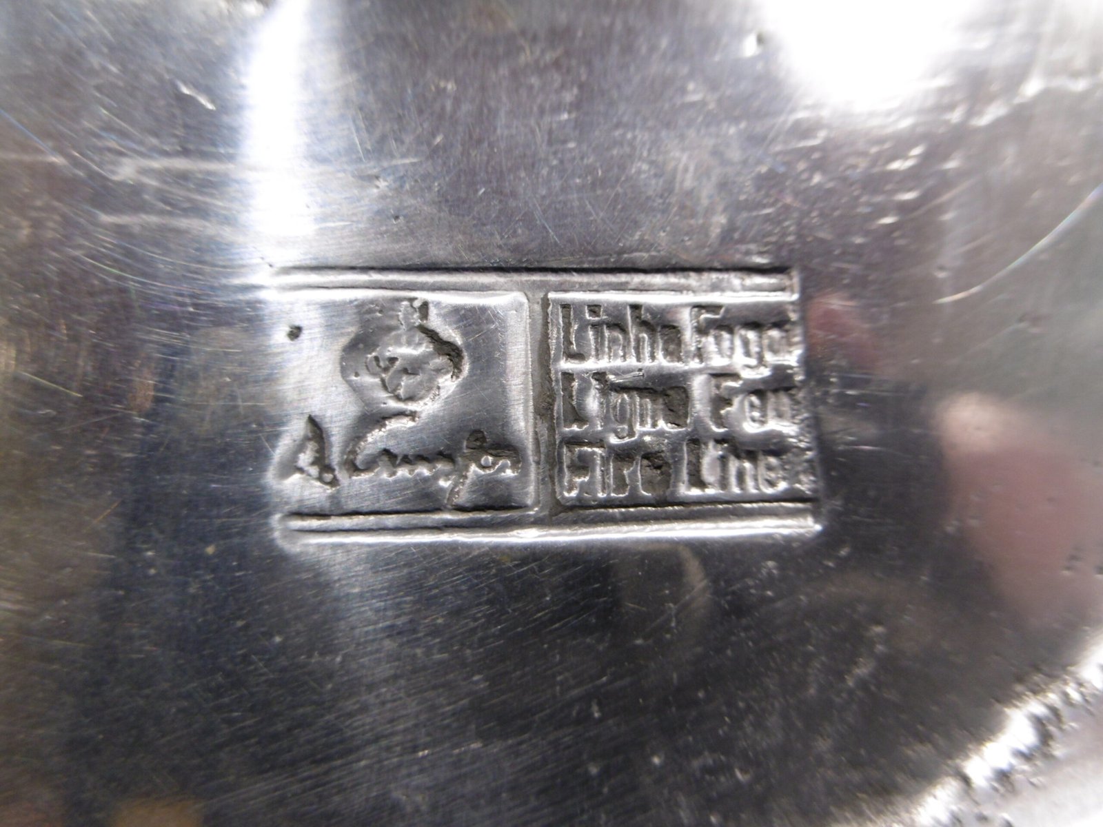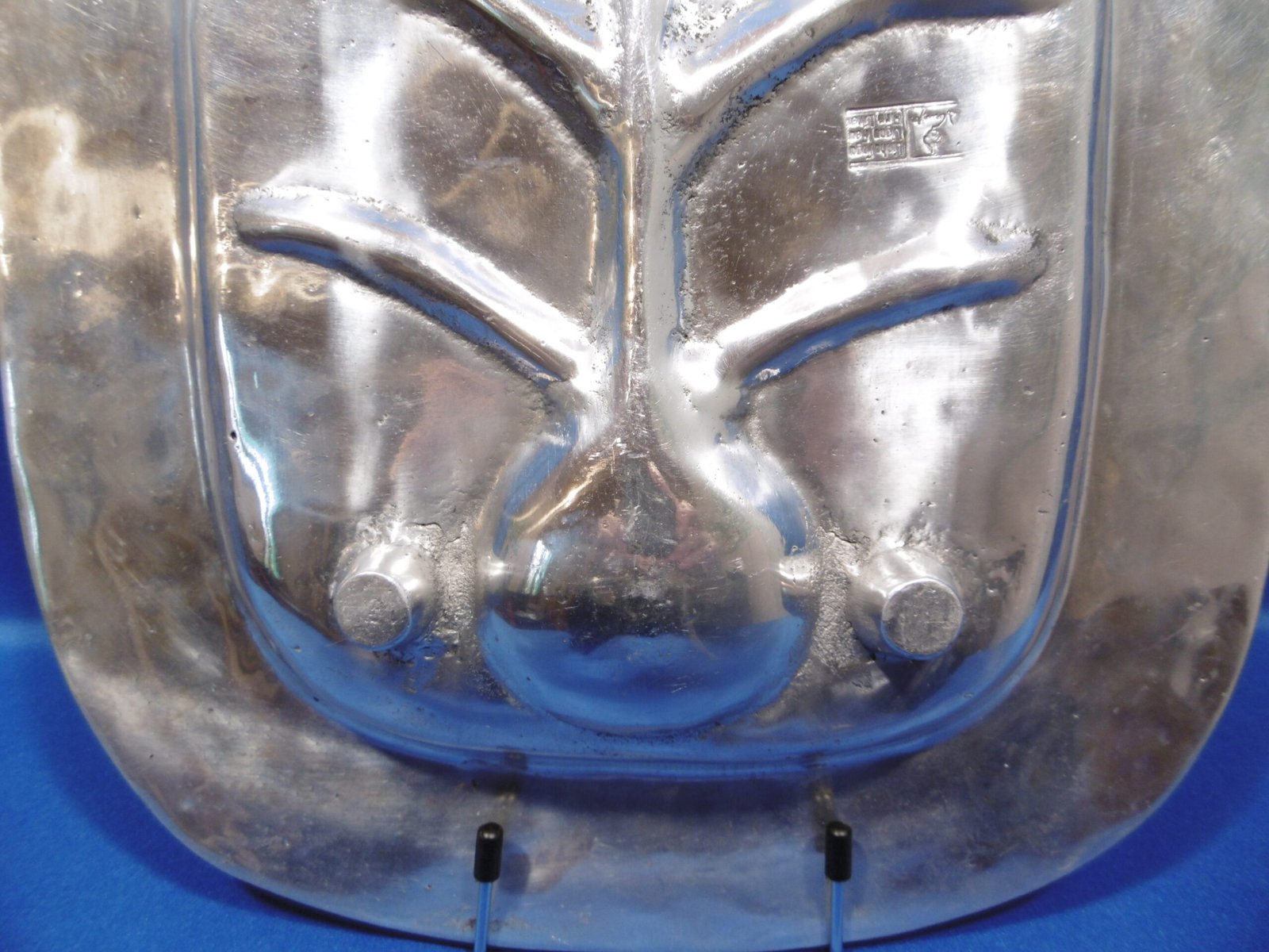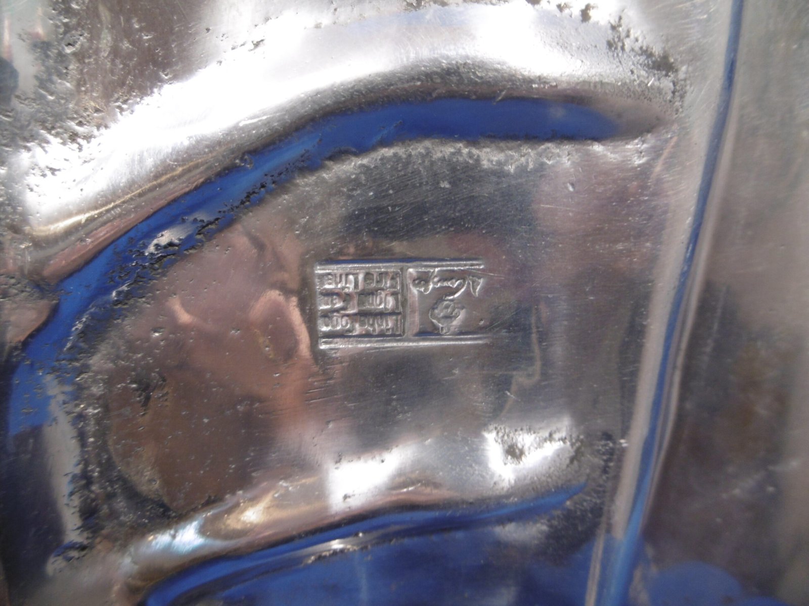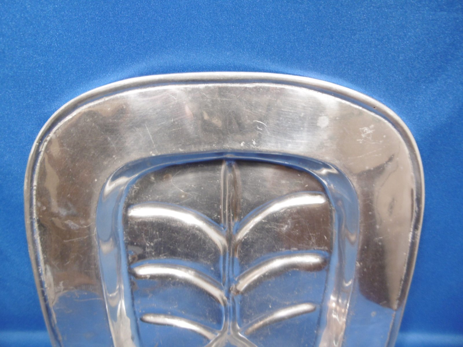 Un grand plat décoratif ou vide poche de Joao Vieira De Campos. Il est en alliage d’aluminium, ligne Feu, créée après 1970 car avant la marque fabriquait des objets en étain. Il repose sur six pieds et son décor en creux par moulage représente une plante de style contemporain.