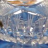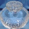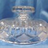 Ce drageoir en cristal taillé est une création de la cristallerie du Val Saint Lambert en Belgique, reconnaissable à son losange en quadrillage. Son volume tient dans un cube et sa construction est en miroir, les deux parties étant quasiment identiques, la poignée est juste plus petite que le pied. Le décor très riche, permet de nombreux jeux de lumière et reflets. Il se compose des fameux losanges quadrillés et opaques tout comme les épis mais aussi de crans, cupules, stries, pointes de diamants et facettes pour le pied et la poignée. C’est à la fois un magnifique objet de décoration mais aussi un contenant toujours utile pour conserver et présenter gâteaux et sucreries. J’attire votre attention sur la masse de cet objet :
