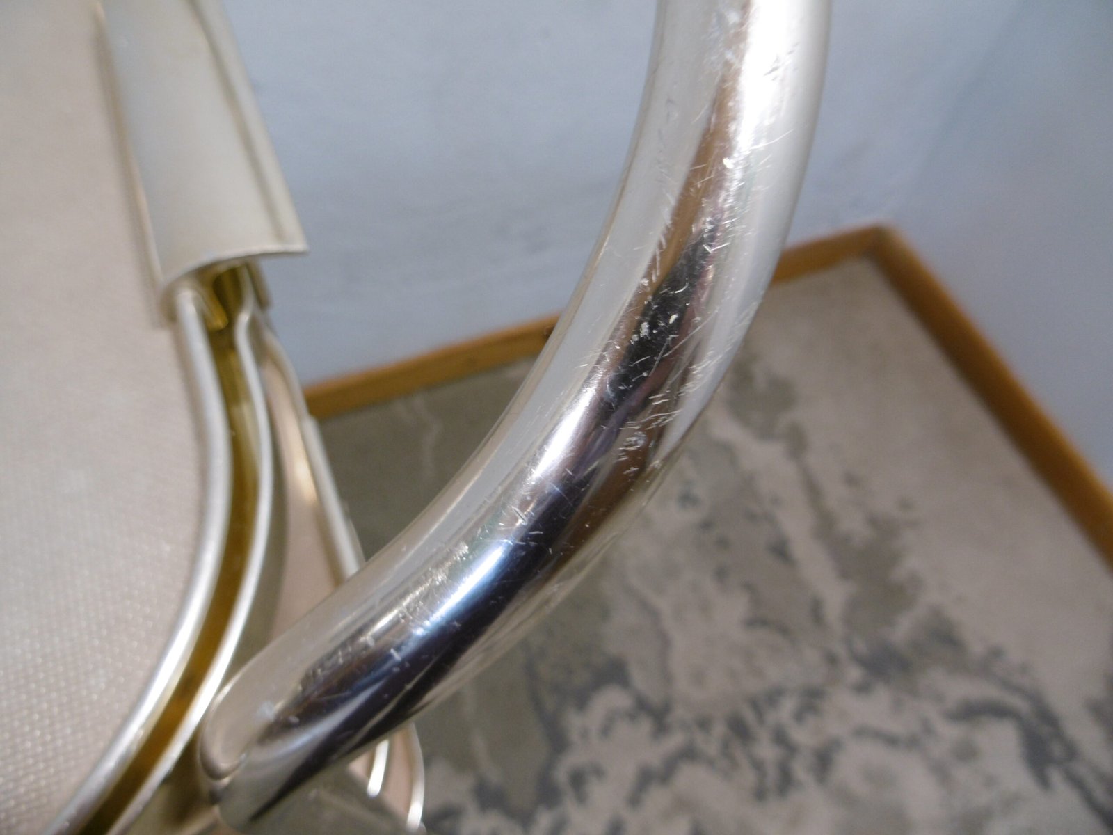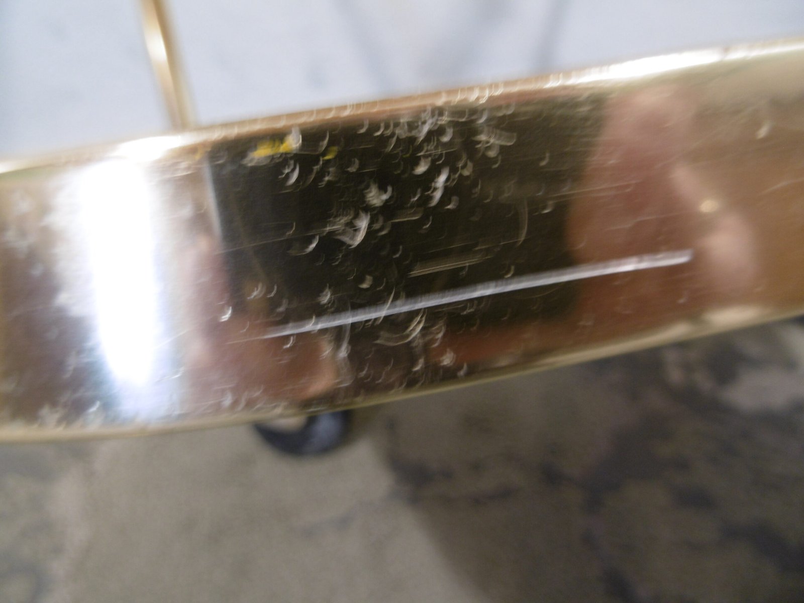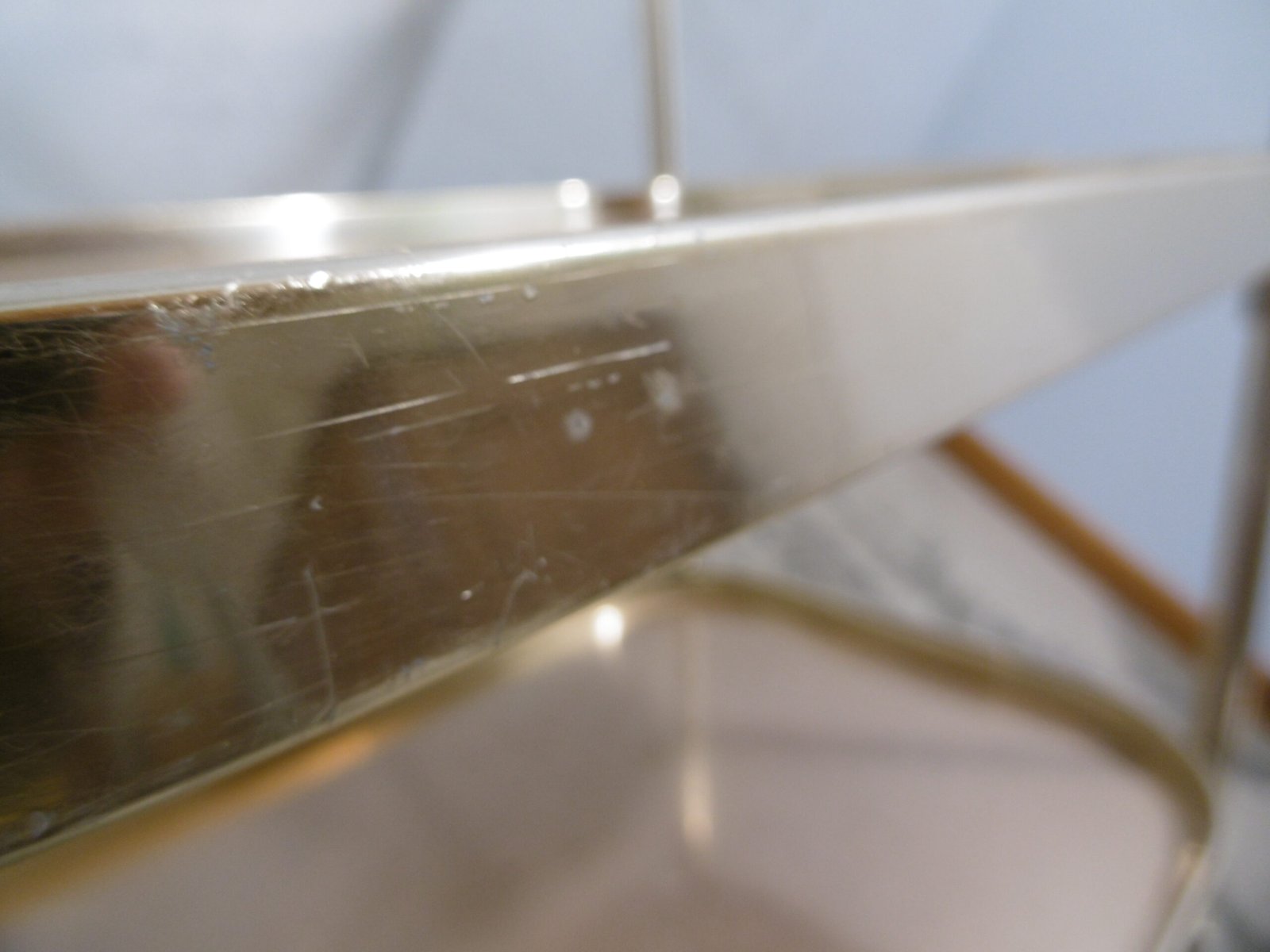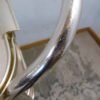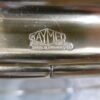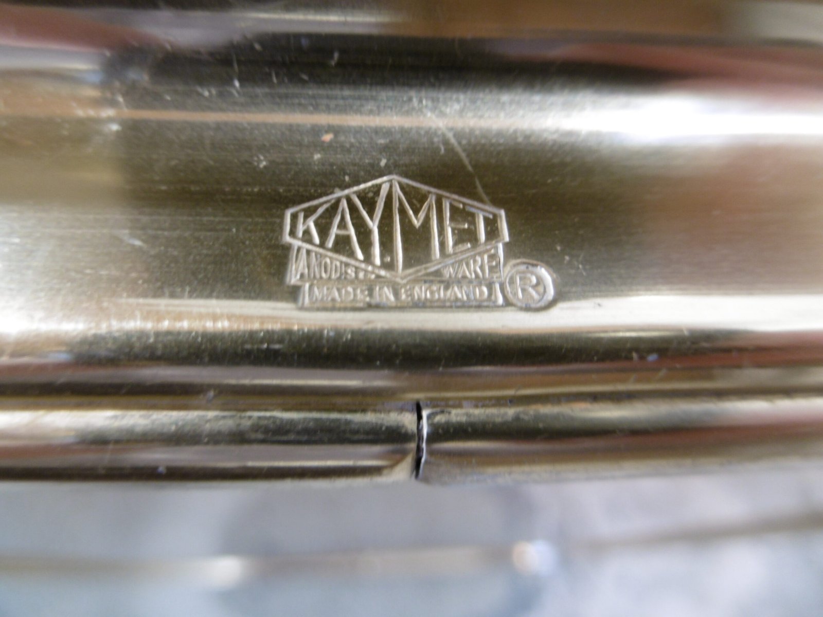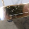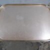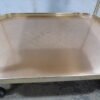 Un charriot roulant de la marque Kaymet London, Manufacture Royale de plateaux, charriots et plaques chauffantes, fournisseur officiel de Sa Majesté. En aluminium anodisé or rose, il comprend trois étagères structurées en nid d’abeille anti-dérapant. La première est composée d’un plateau amovible bien pratique. Les quatre roulettes, dont deux directrices, sont en caoutchouc. Très petit prix car cette table roulante a été abimé par des rayures et des coups, regardez bien les photos.